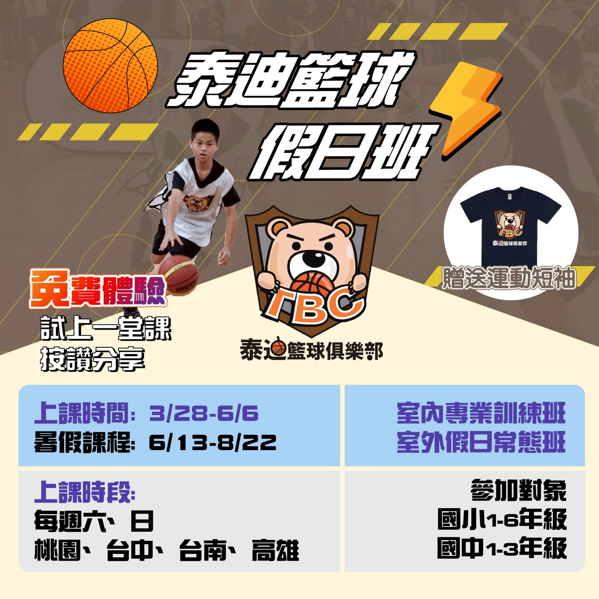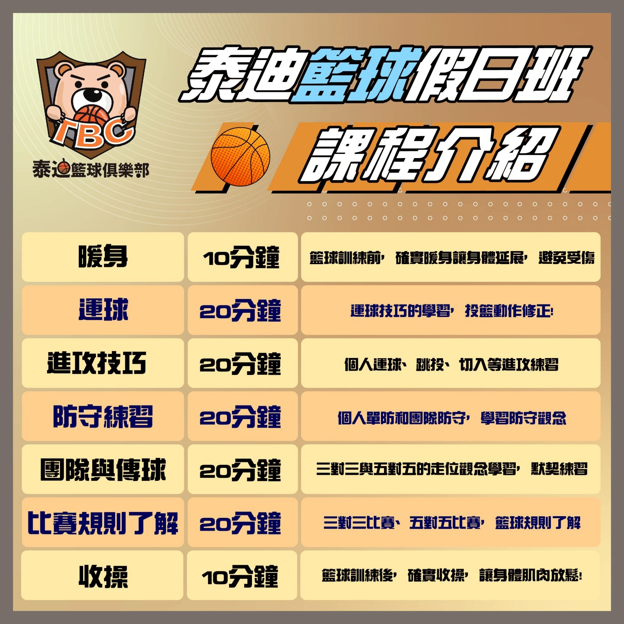 利用有趣的遊戲方式,讓大家學習到籃球基礎,同時也有個快樂的學習時光,